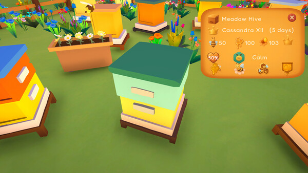 A cozy beekeeper tycoon set in a sunny low-poly meadow. Manage hives, breed queens, extract honey, and trade jars on BeeNet while the day–night cycle rolls by and your lanterns glow at dusk.