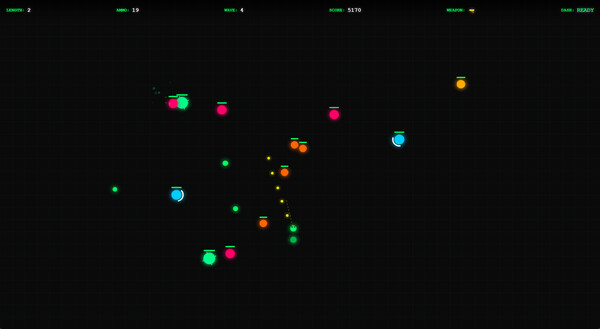 DodgeKill is a minimalist bullet hell arcade game. Your cursor is both your heart and your weapon : dodge enemy waves, then strike back! Will you survive until the end ?