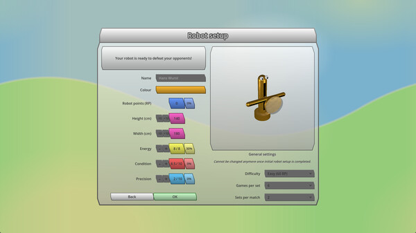 In this turn-based, tactical tennis simulation you build, control and improve your own tennis robot. Play on grass, clay and hard courts and balance your energy, precision and condition throughout the match. Maintain and develop your robot between matches.