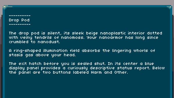 The most anticipated game since chess! A text-based comedy adventure in which you interact with the world by slamming one of two brightly colored buttons: Harm or Other