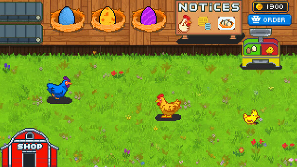 Manage your cozy pixel art chicken farm! Feed, breed, and collect colorful chickens by completing achievements. Master the egg cycle, customize your flock with accessories, and unlock the legendary Rainbow Chicken in this charming farming sim!