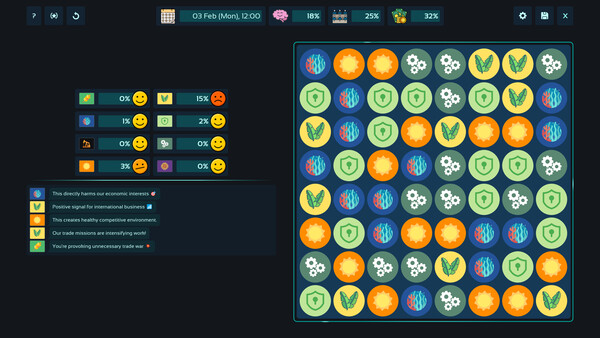 State of Affairs is a realistic turn-based political strategy game where you lead a nation through pivotal historical moments. Manage legislative bodies, balance factional tensions, and make strategic decisions that shape the political, economic, and social future of your country.