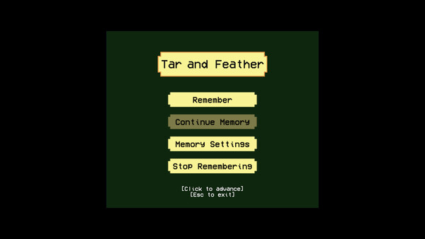 A short story visual novel-like game with a gently interactive narrative and some puzzling mysteries to unlock. Discover how your father got tarred and feathered. Get lost in the memory with ever-corrupting visuals and an immersive soundscape as you make your way to the emu farm.
